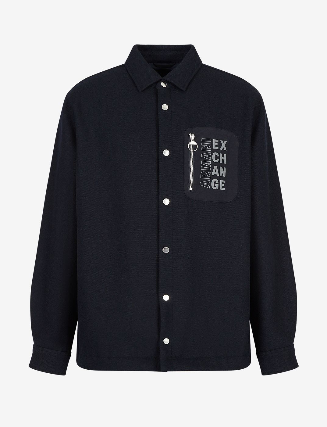 Descrizione: Giacca uomo ARMANI EXCHANGE Chiusura con bottoni Modello camicia Polsini con bottone Taschino con zip Brand logo sul petto Tessuto 49%lana 46%poliestere 4%acrilico 1%poliammide