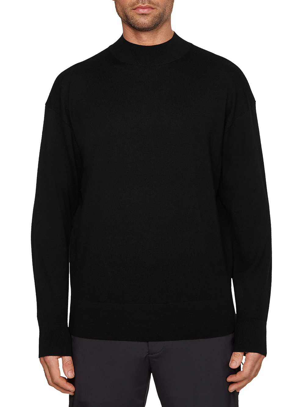 Maglione da uomo, girocollo, tinta unita, maniche lunghe