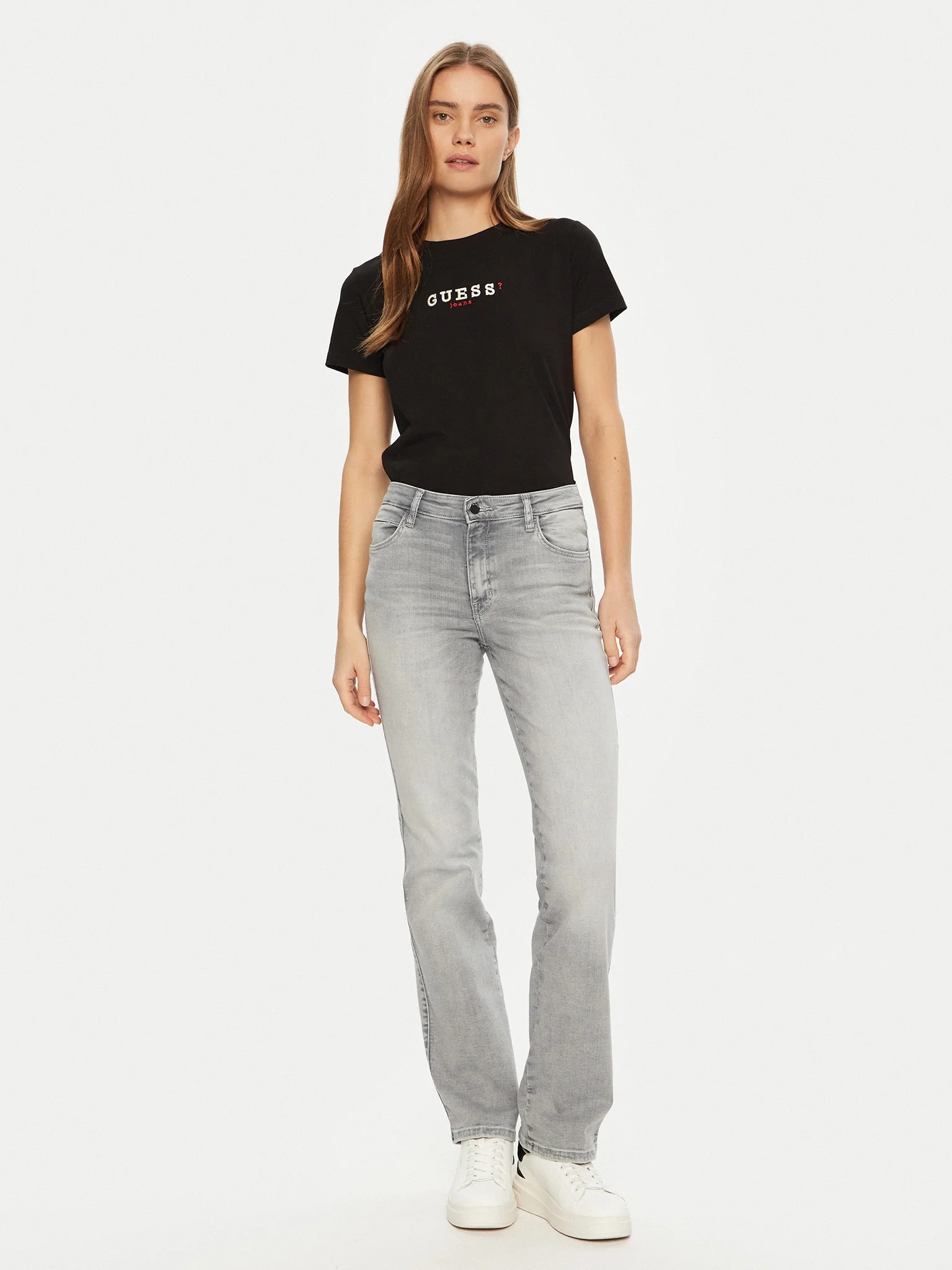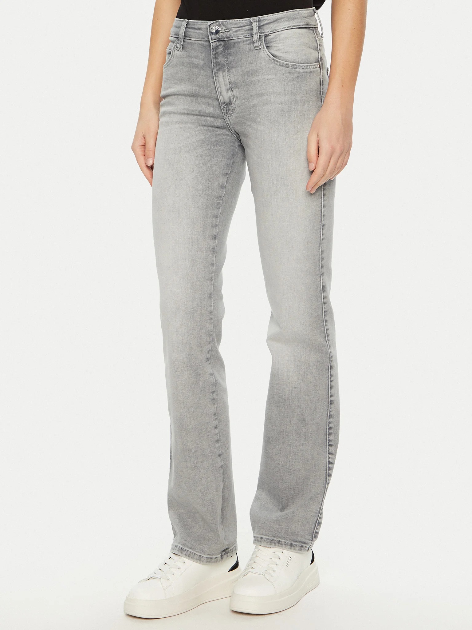 Jeans da donna modello sexy straight, lavaggio grigio, chiusura con zip