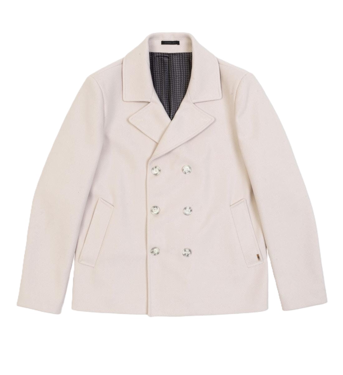 Giacca da uomoGIANNI LUPO,chiusura con doppiopetto , tinta unita, maniche lunghe, trama diagonale