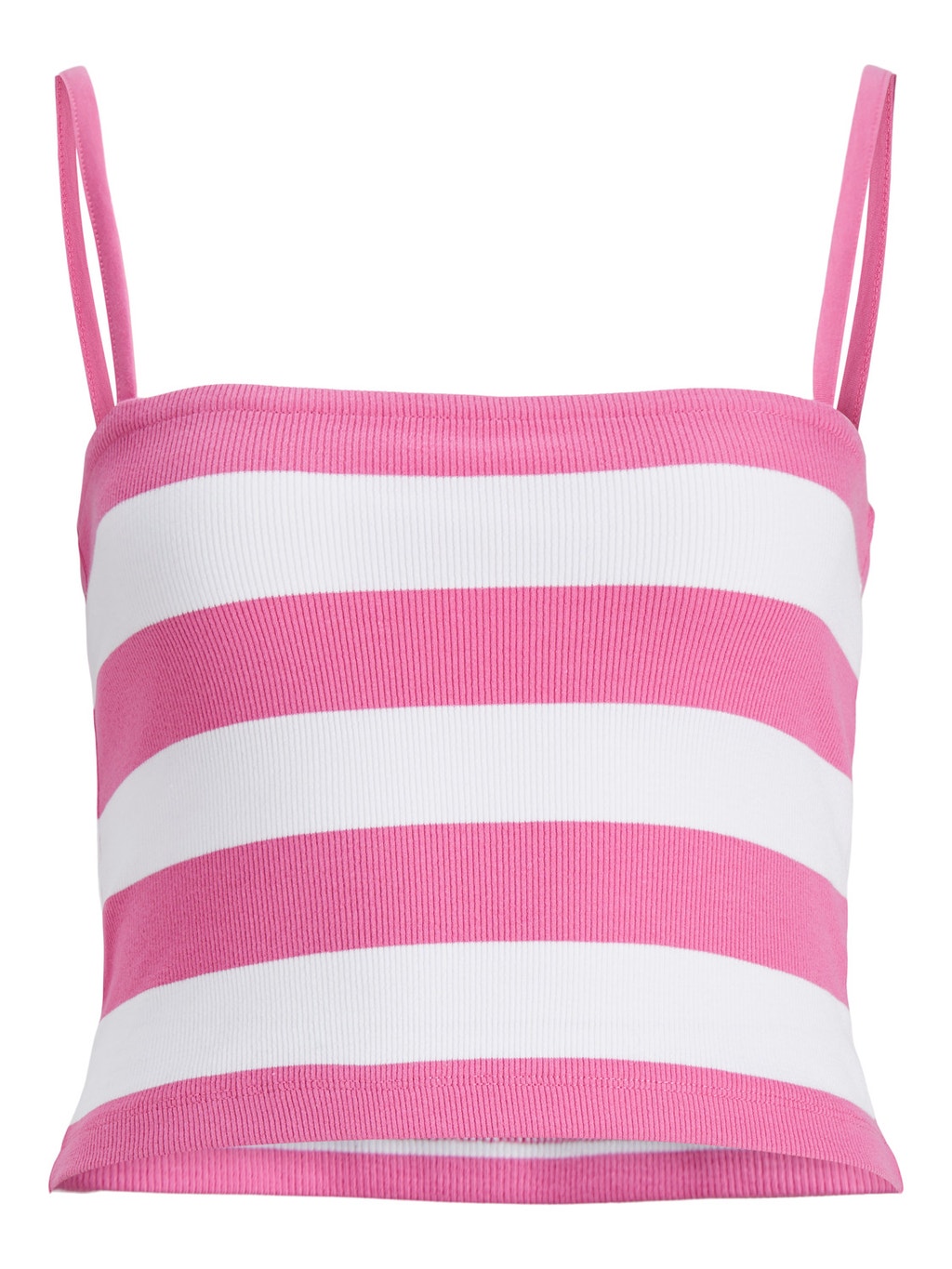 Top da donna, scollo dritto, spalline piccole, fantasia a righe, tessuto in costine