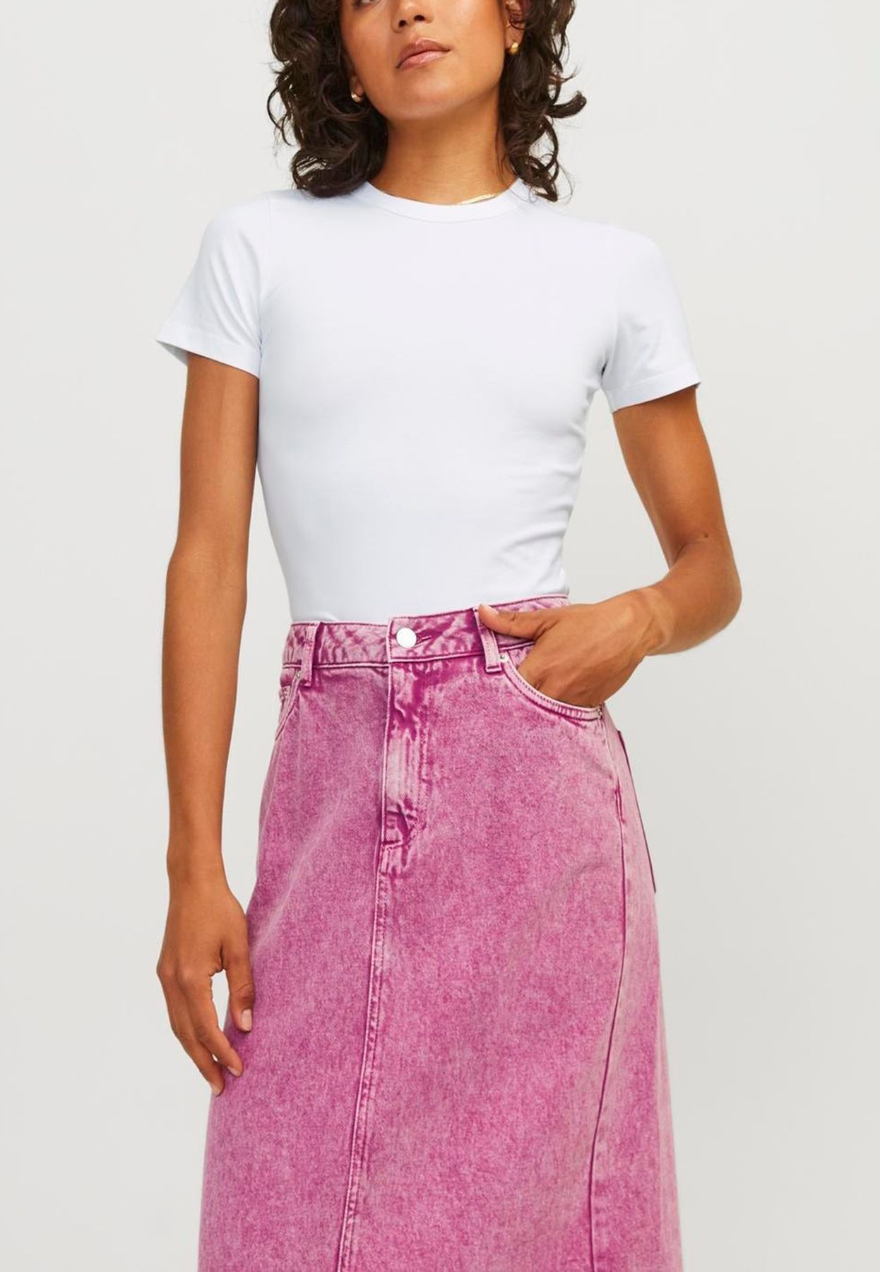 T-shirt da donna modello Gigi, tinta unita, stretch fit, girocollo, maniche corte