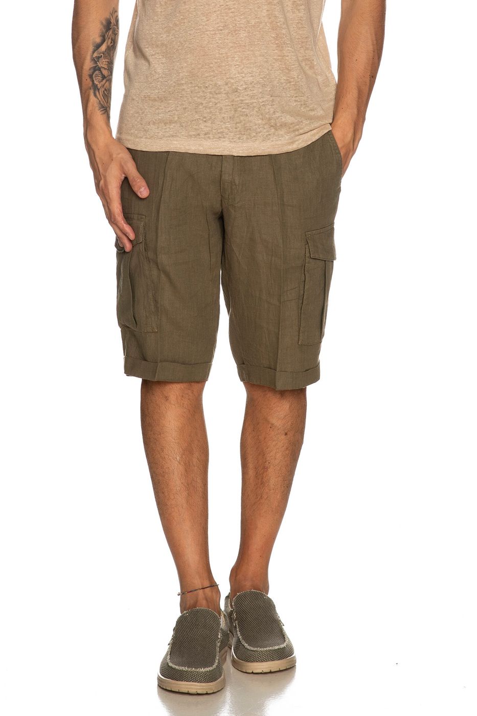 Bermuda cargo lino uomo. Brand MARKUP. Tasca america. Chiusura zip.