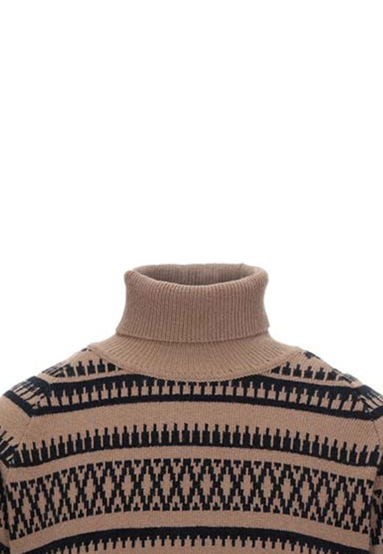 Maglione uomo a collo alto con tessuto fantasia jacquard