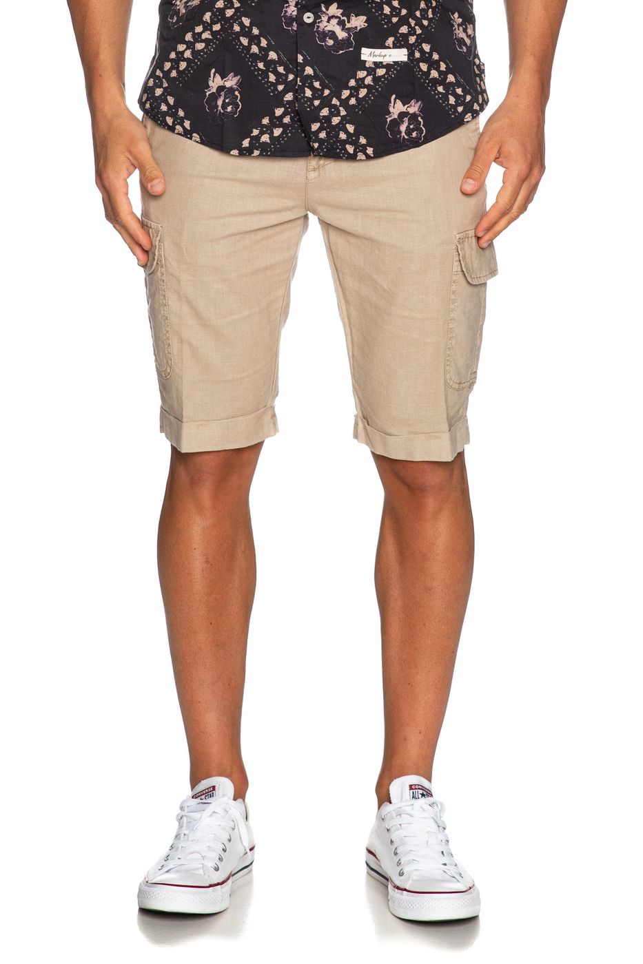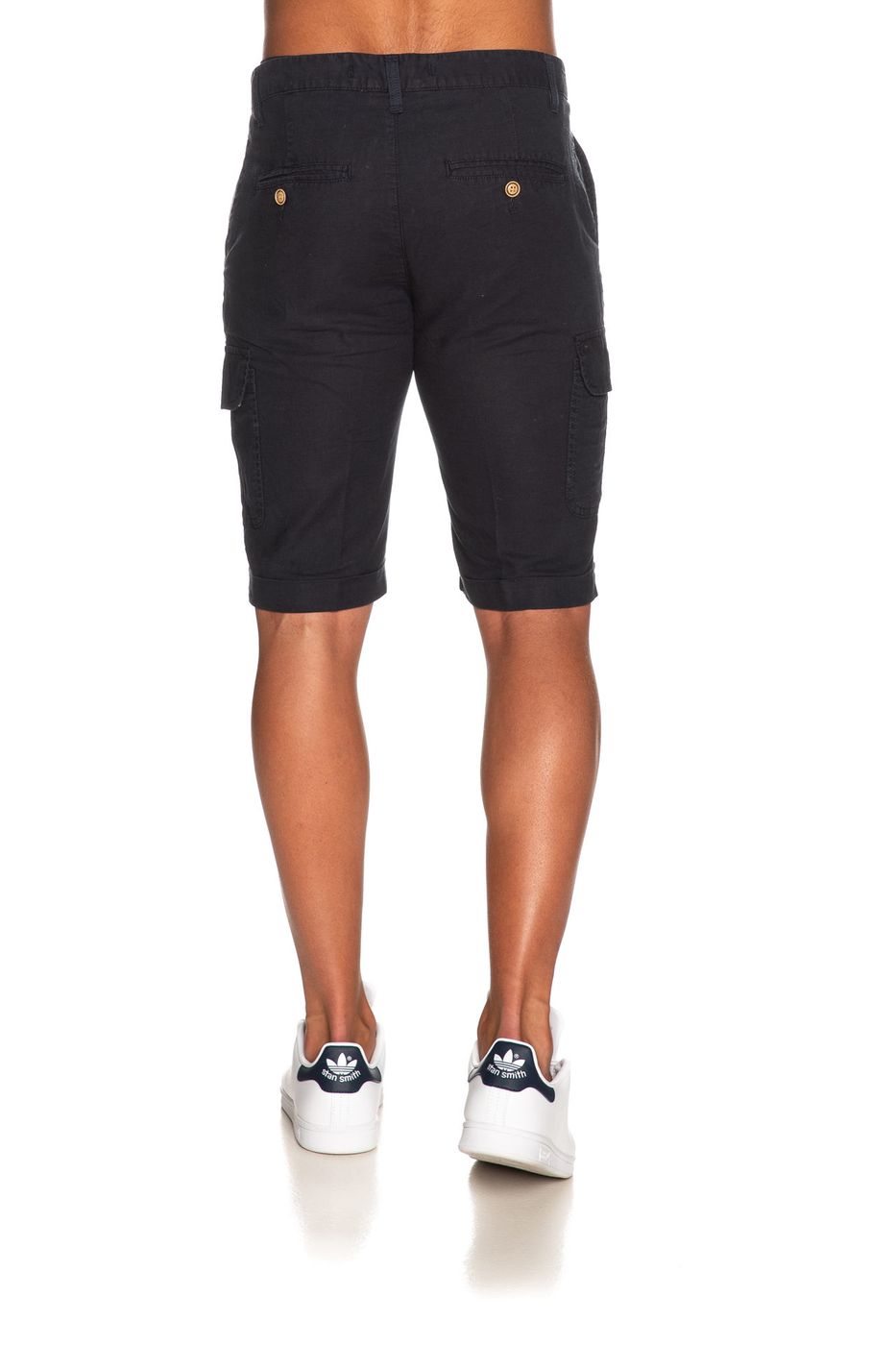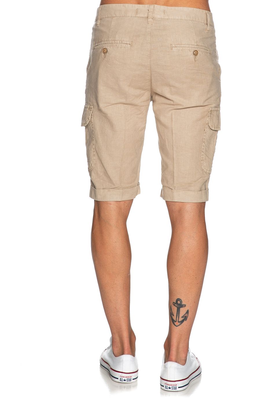 Bermuda cargo uomo. Tasca America. Chiusura zip. Tinta unita.