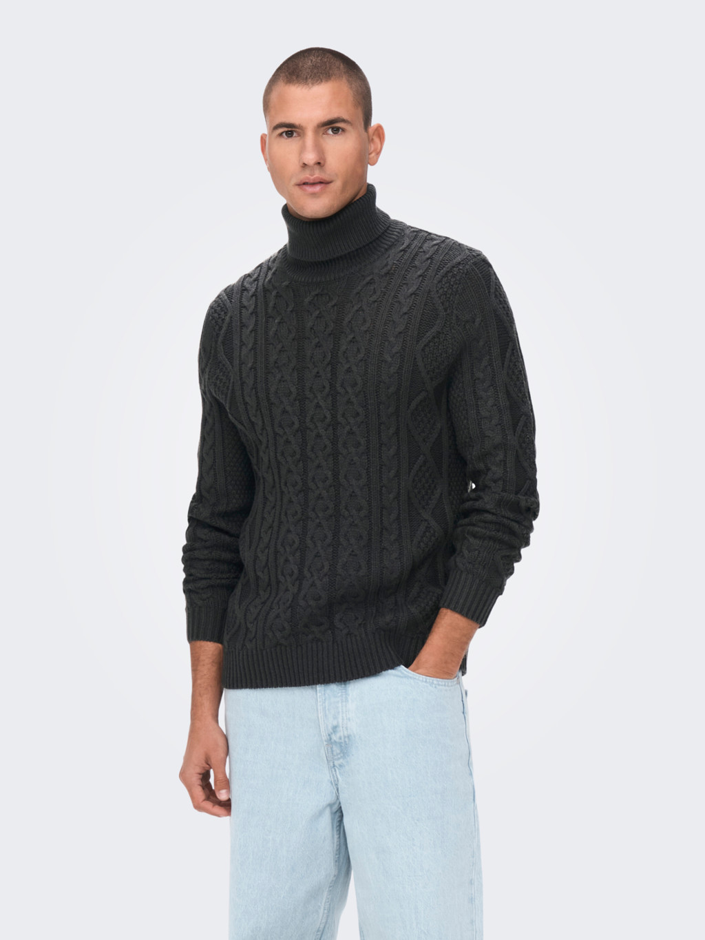 Maglione uomo tessuto a coste Collo alto. Manica lunga brand ONLY&SONS nome modello RIGGE