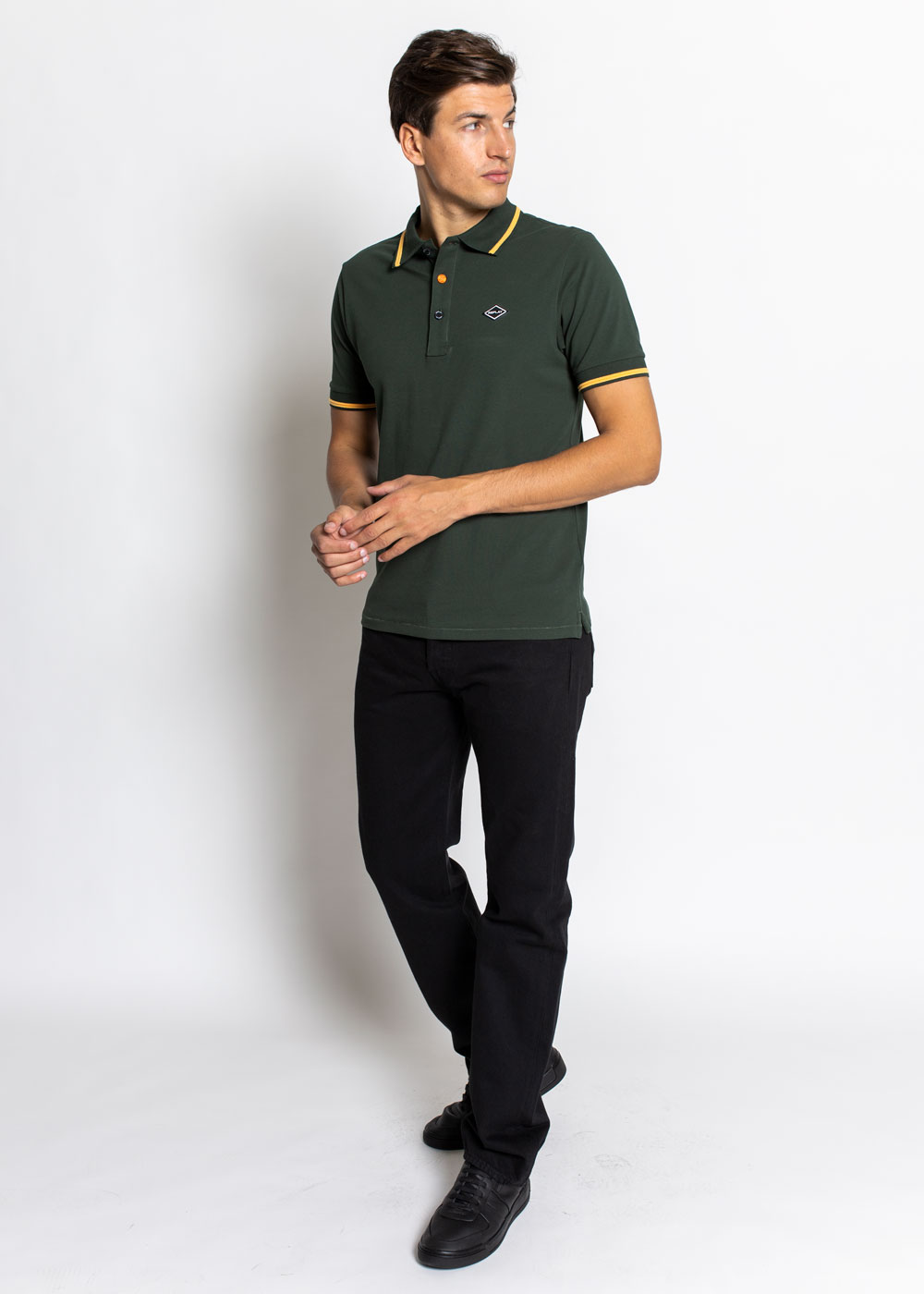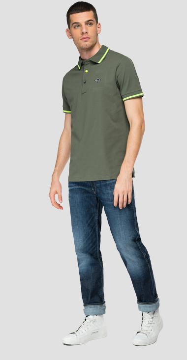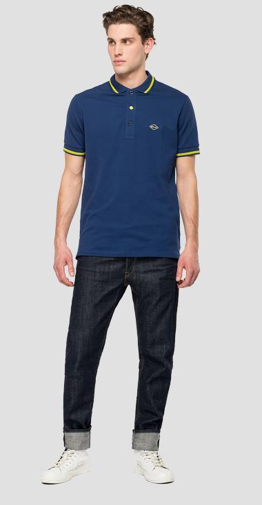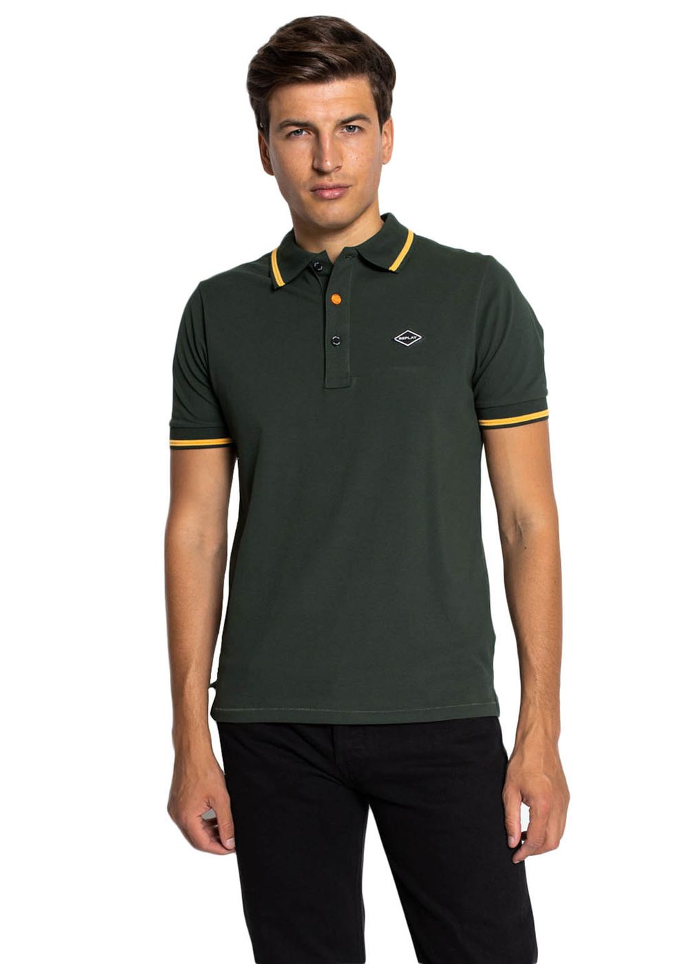 Polo uomo. Brand REPLAY. Manica corta. Logo all'esterno del colletto retro. Chiusura con 3 bottoni.