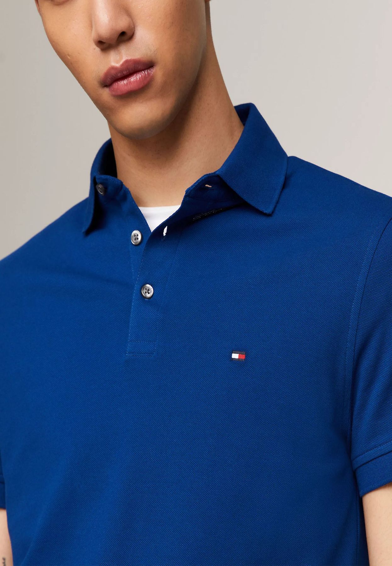 Polo da uomo, slim fit, maniche corte, collo classico, tinta unita, brand logo bandierina piccolo