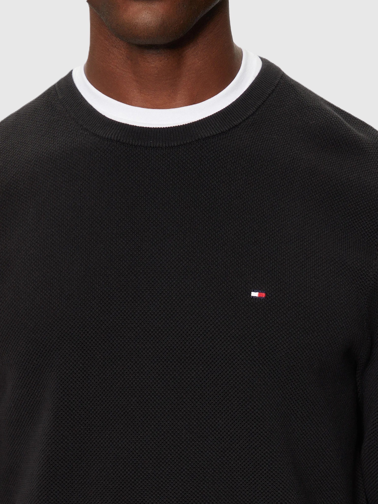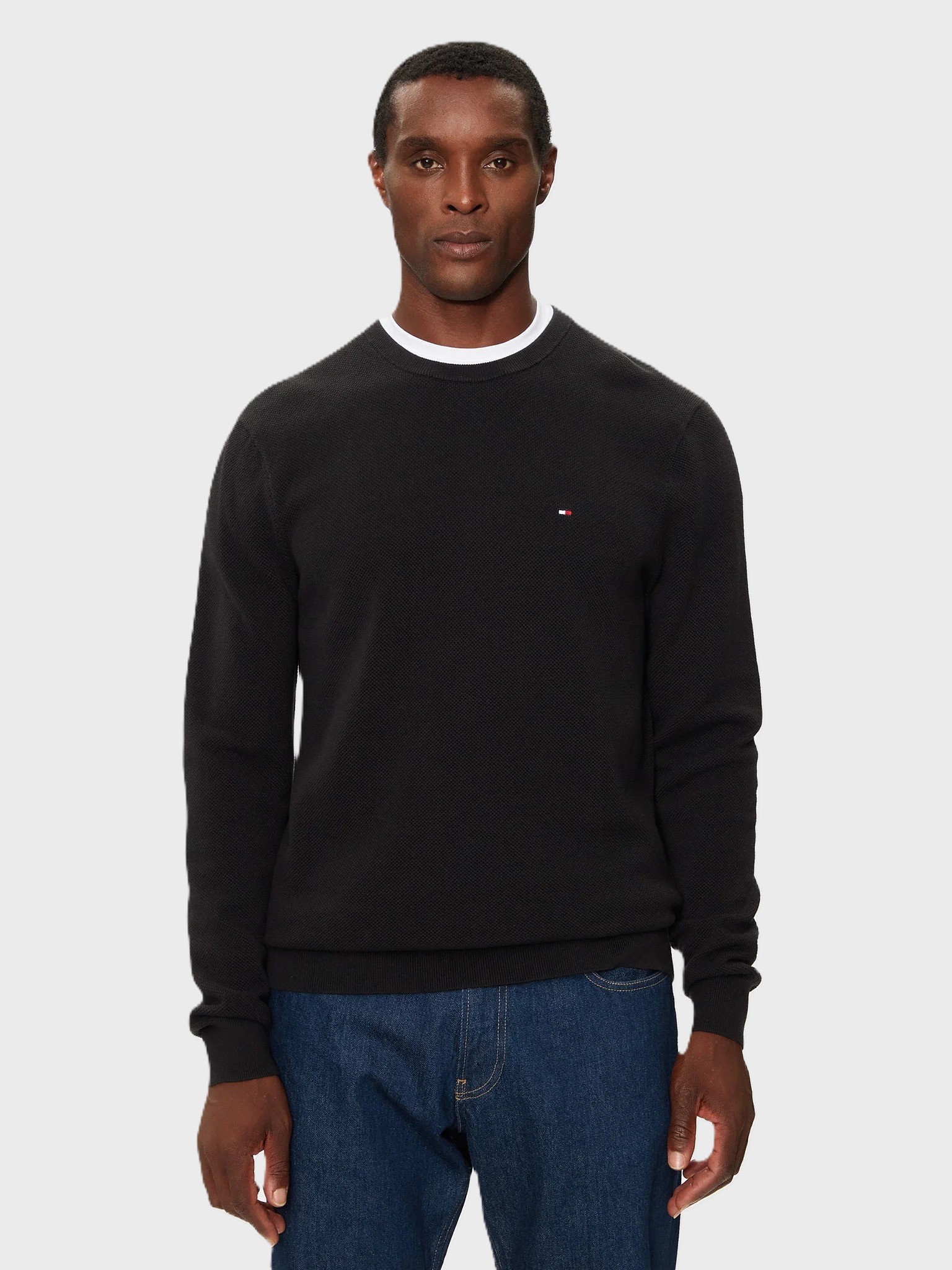 Maglione da uomo, girocollo, maniche lunghe, brand logo piccolo, tinta unita