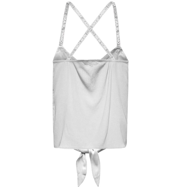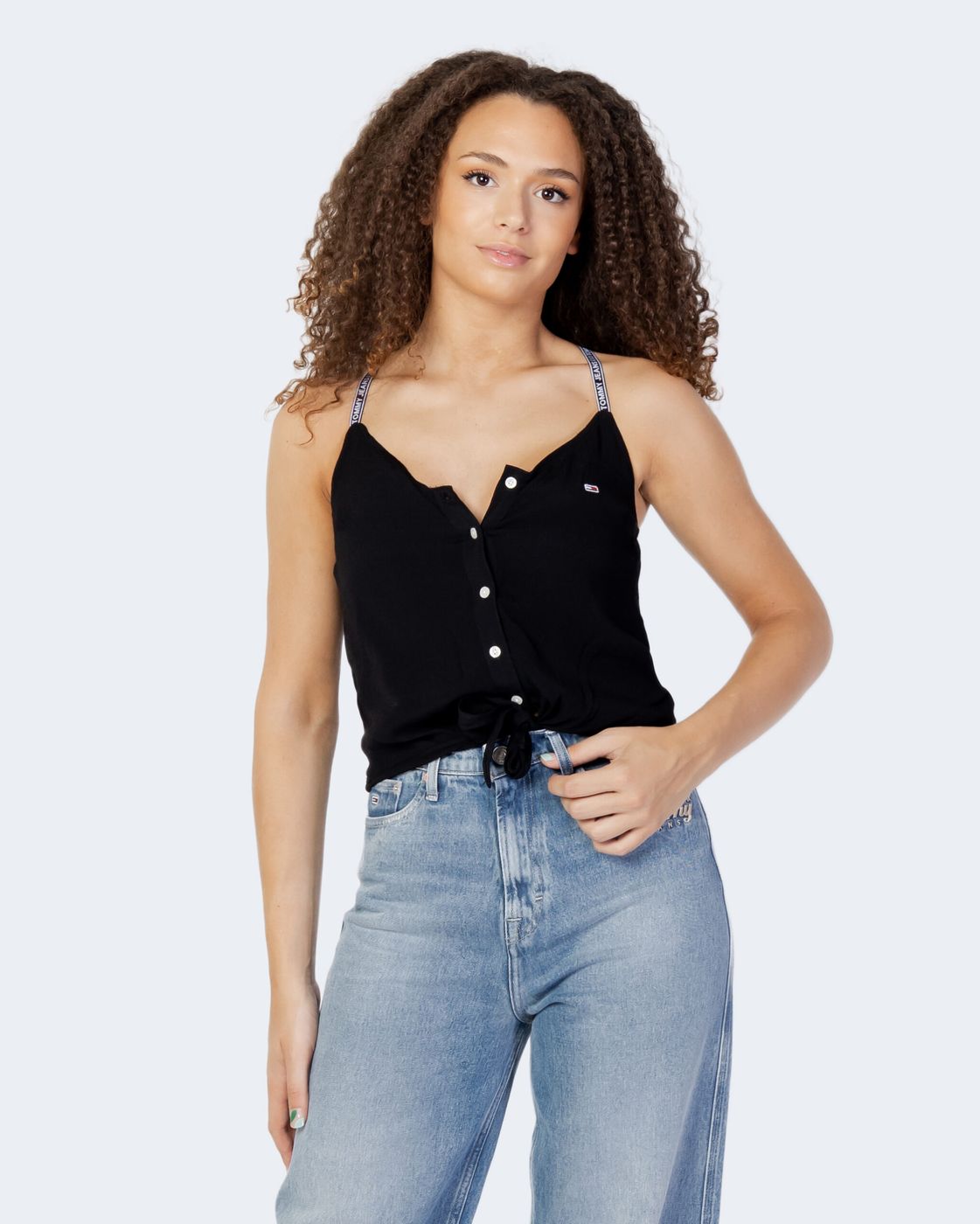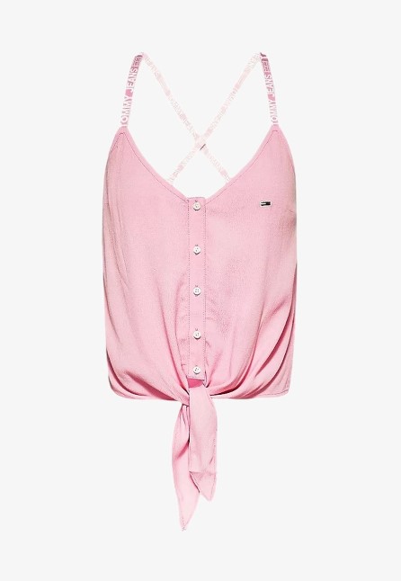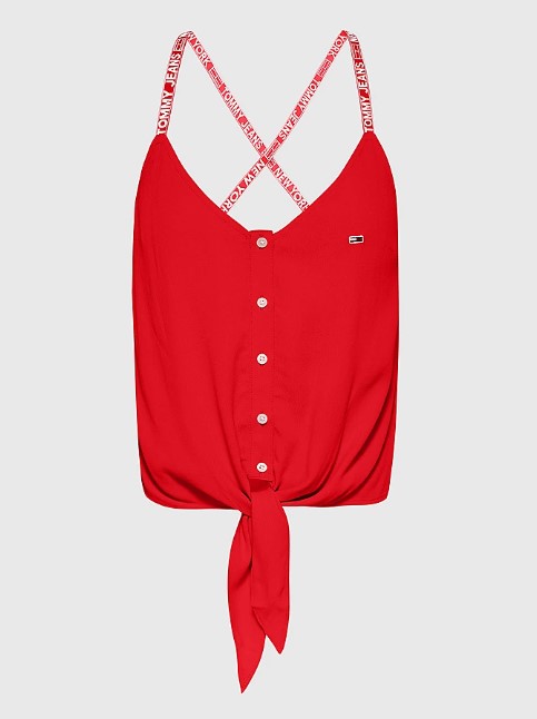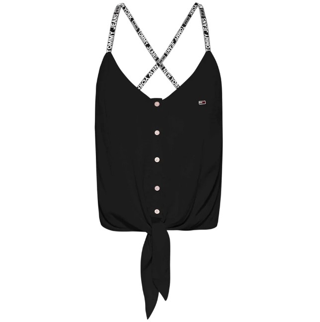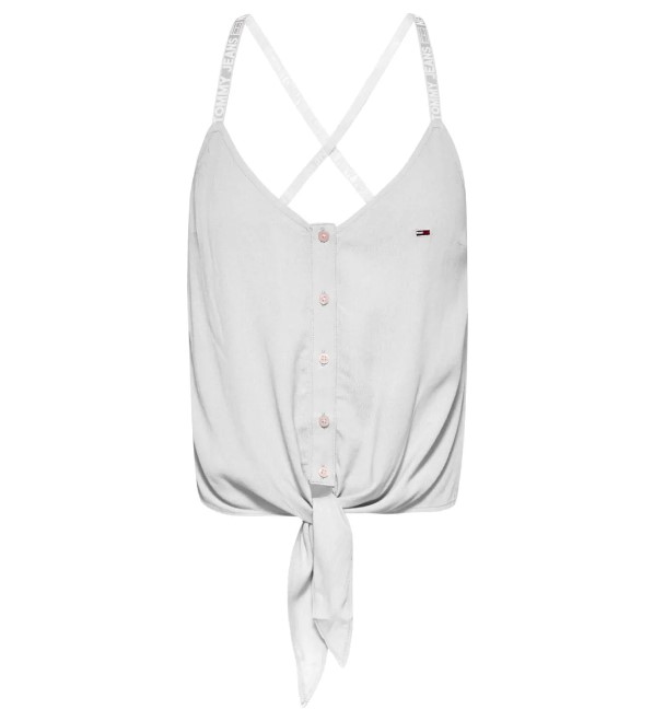 Top Camiciotto con nodo donna. Bretella stretta con logatura. Modello corto. Chiusura con bottoni. Logo cucito laterale.